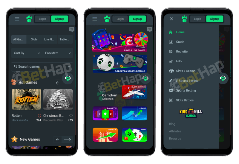 King of the Hill Tournaments. Gamdom hosts daily and monthly leaderboard contests called “King of the Hill.” Players climb the ranks by playing slots, table games, or even sports bets. Top positions can land you a slice of prize pools up to $200,000, and even the lower ranks walk away with real cash.