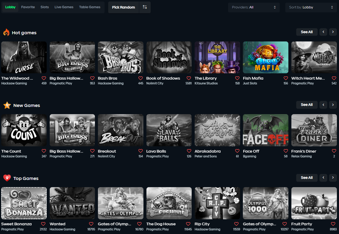 The platform keeps this area lean but fair. You won’t find a giant library of crash or arcade titles, but what’s there hits solid.